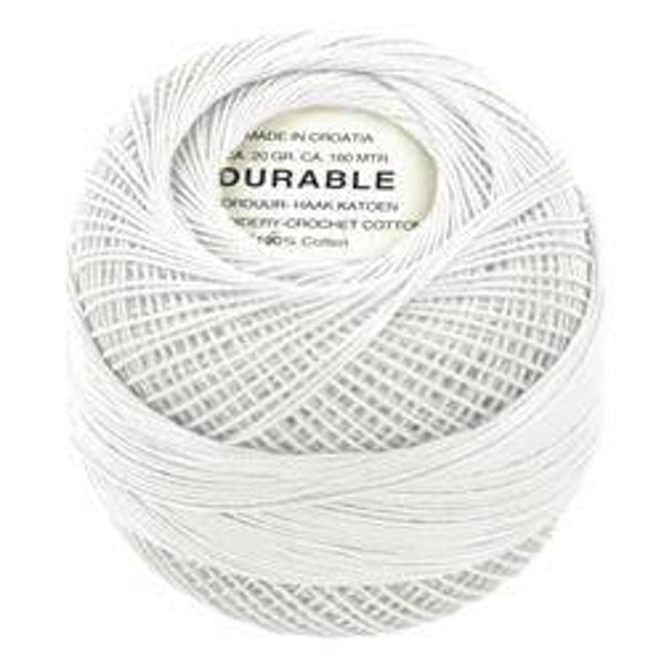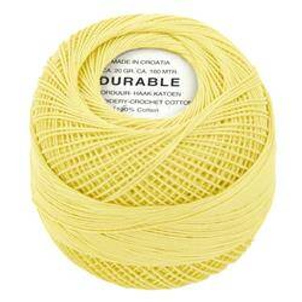 Durable borduurgaren haakkatoen 20gram per bol.Voor dit garen van 100% katoen adviseren we een naalddikte van 1,0 - 1,5 mm. Hierdoor is het erg geschikt voor bijvoorbeeld minigurumi, een variant van het populaire amigurumi. Het hoogwaardig katoen maakt het garen machine wasbaar tot 60 graden.